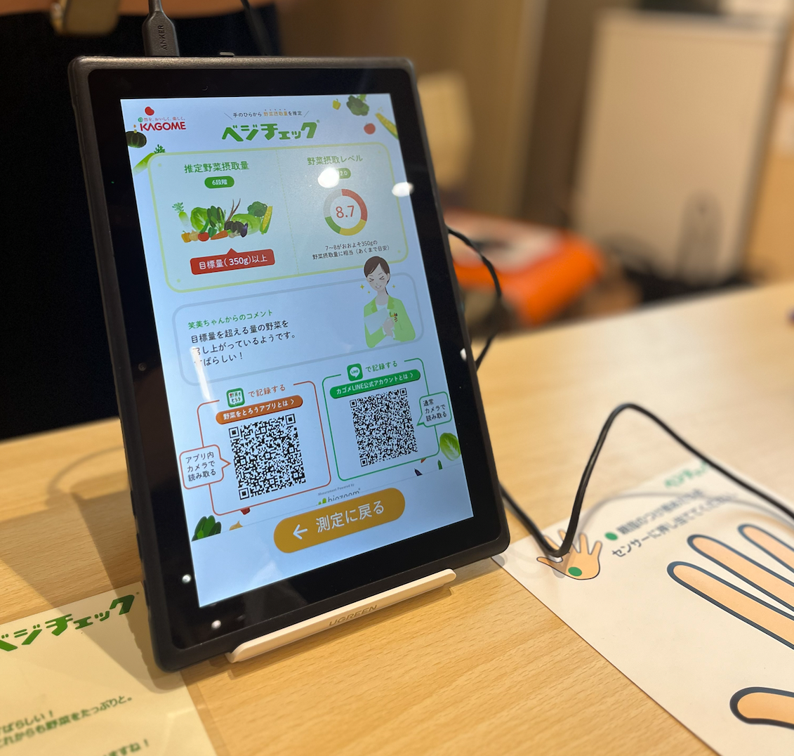 第一生命 福岡支社の方が実施してくれた「ベジチェックコーナー」は
